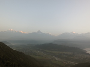 A welcome change from the physical labor of house building, we are touring some of the well known sites around Pokhara. Saturday morning at 5am we headed up to Sarangkot. The view was spectacular – perched high above the town we watched another day dawn. As the sun – a huge blaze of orange – slowly appeared, evidence of its rays illuminated the surrounding mountain peaks. Gorgeous.