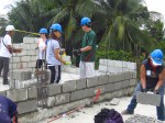 As we lay more block and the walls grow taller there is more plastering to be done. Many of our team mates are now handy with a trowel having learned the art (although not perfected it) of getting mortar to stick to the walls. Mortar mixing, brick tossing and plastering continue.
