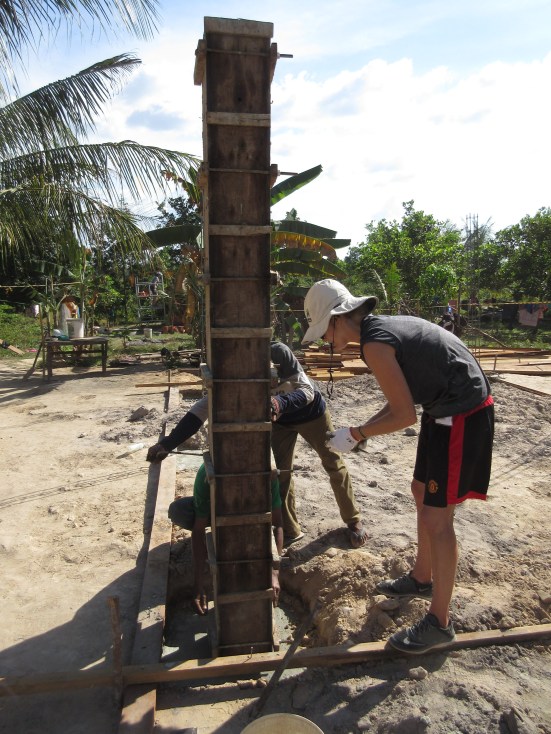 One of the most exciting aspects of this build is the houses themselves. We are working for two families this week, whose houses will be constructed on stilts and made of wood. This is a first for all of us! The houses are small, and we are hoping to finish them both by Friday. So exciting!