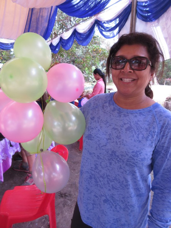 Arti blows up balloons