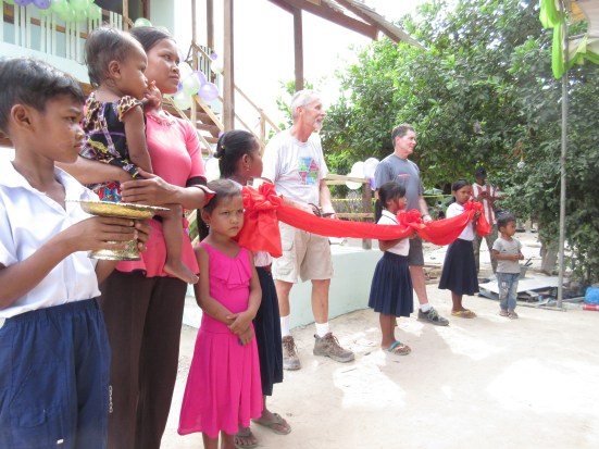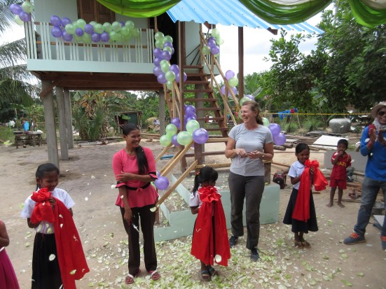 [No one celebrates like the Khmer! This was one of the best end of build parties that we’ve ever attended. We cried with joy in our hearts at the work we accomplished as one big team, we ate together, played games and sang and danced. [If you ever build here, watch out for the talcum powder dance!]