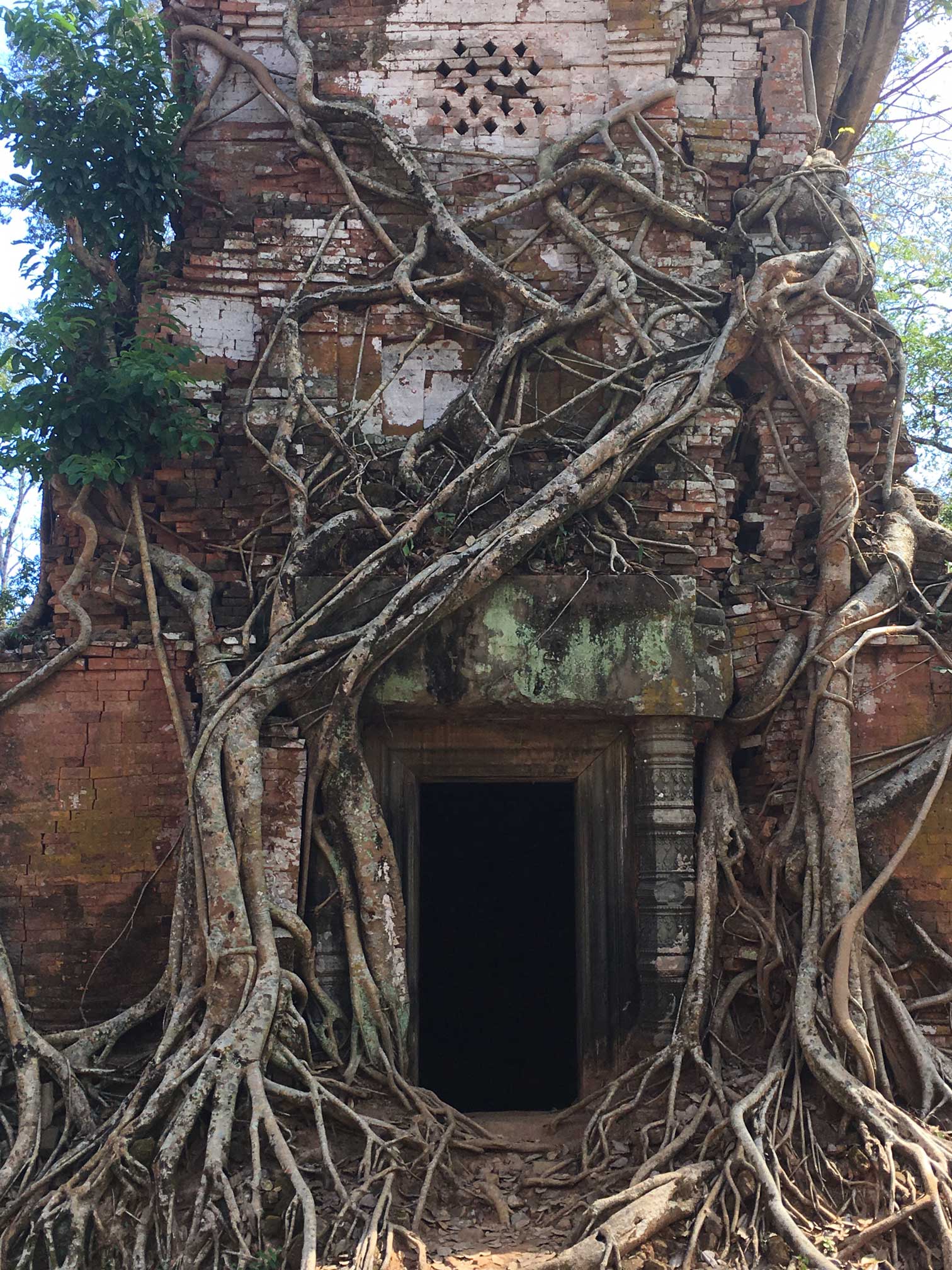 Among the many smaller temples found at Koh Ker are these lovely towers, three of which are Prasats, shrines for idols, with the two other towers being libraries. Some of the towers have been completely taken over by strangler figs, giving the entire monument the appearance of emerging from the jungle, unique to Cambodia.