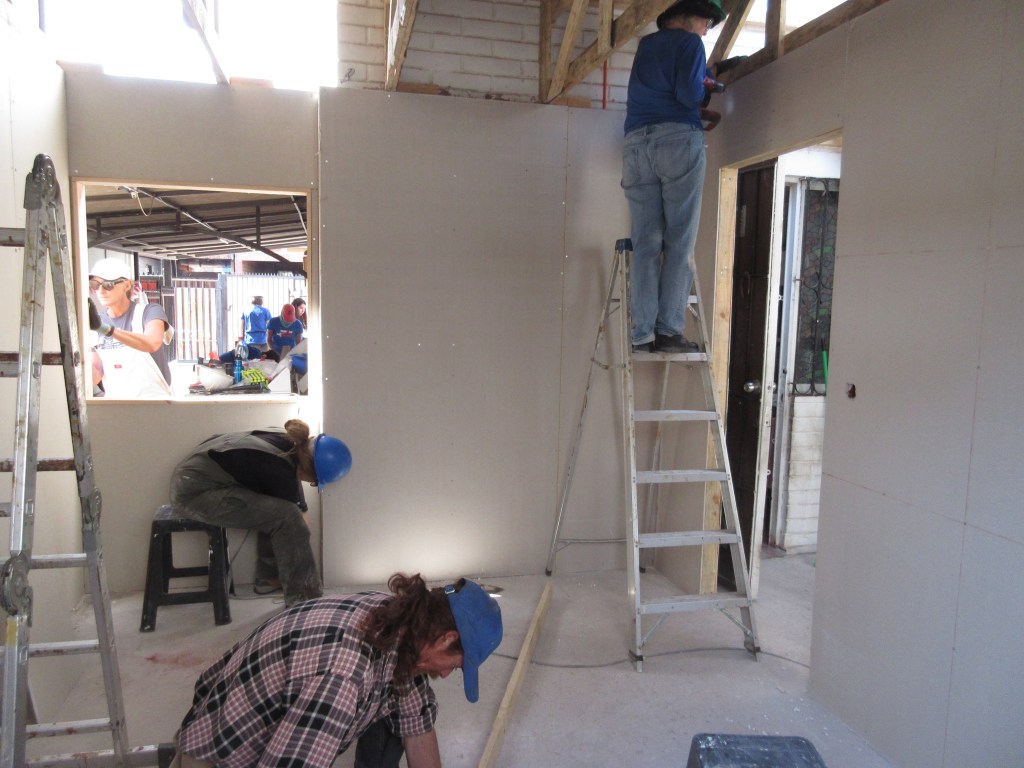 Another crew worked on finishing the drywall interior of Claudia’s bedroom.