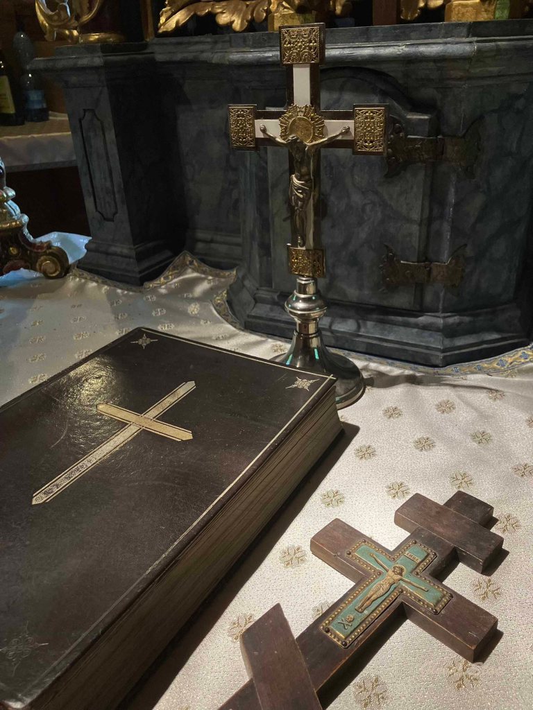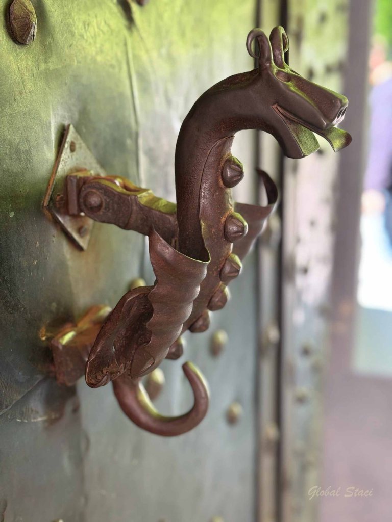 These odd creatures, added to the pews in the 17th century, have a special meaning. The monkey head represents wisdom, the lion body represents strength, the legs of a dog, loyalty, and the ball is the world, upon which rests the dog’s paw, a symbol of protection and care.