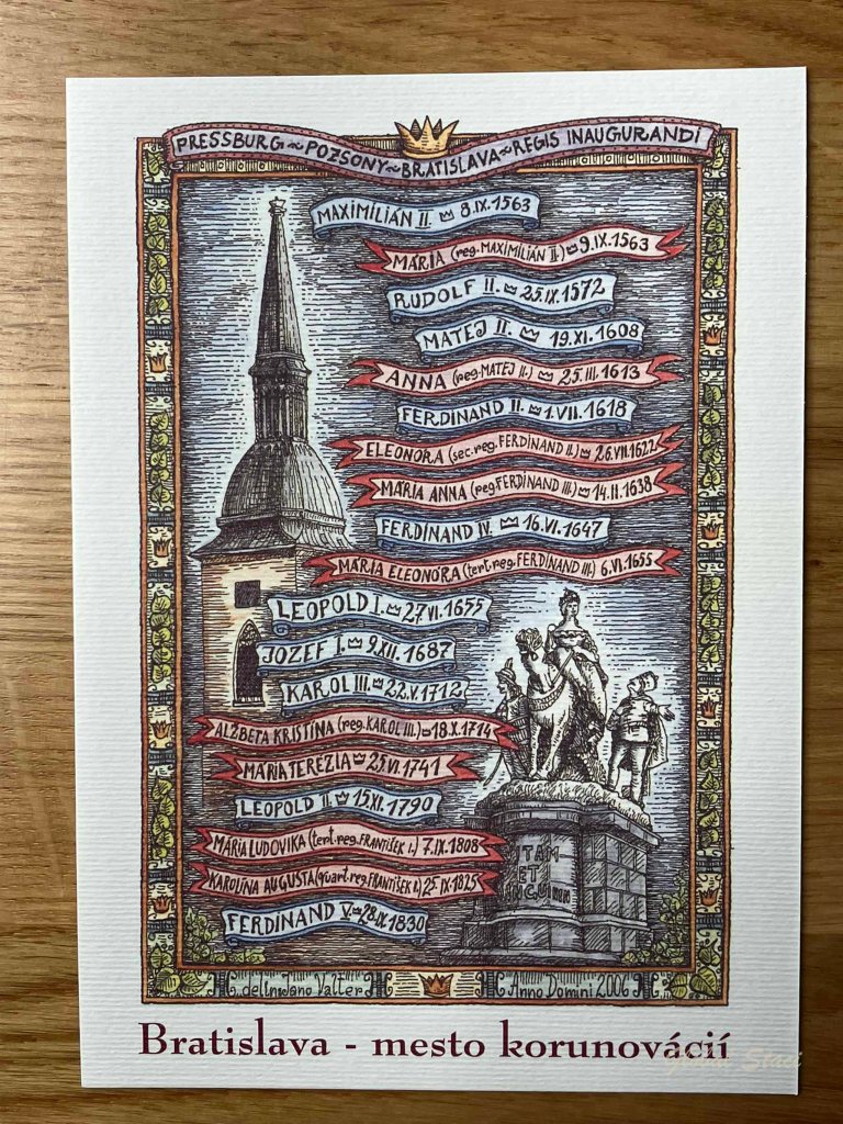Across the street is St. Martin’s Catholic Cathedral, the largest and one of the oldest churches in Bratislava, known especially for being the coronation church of the Kingdom of Hungary between 1563 and 1830.