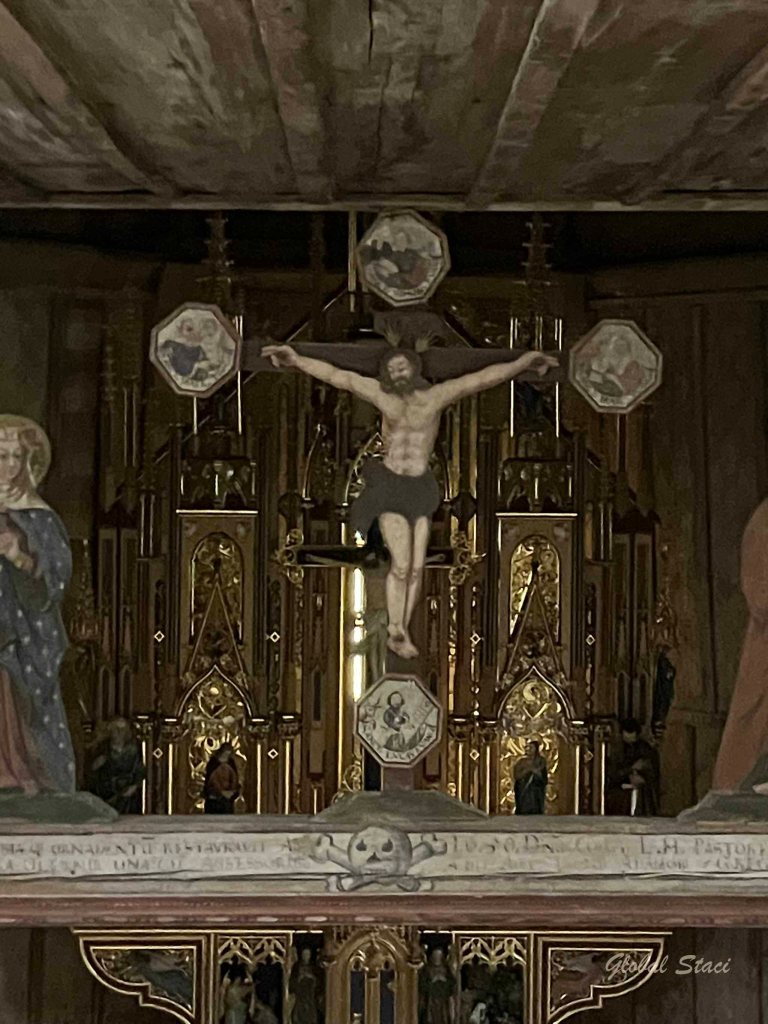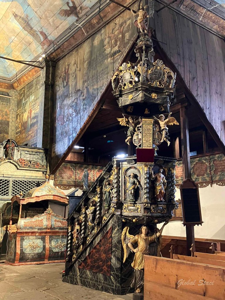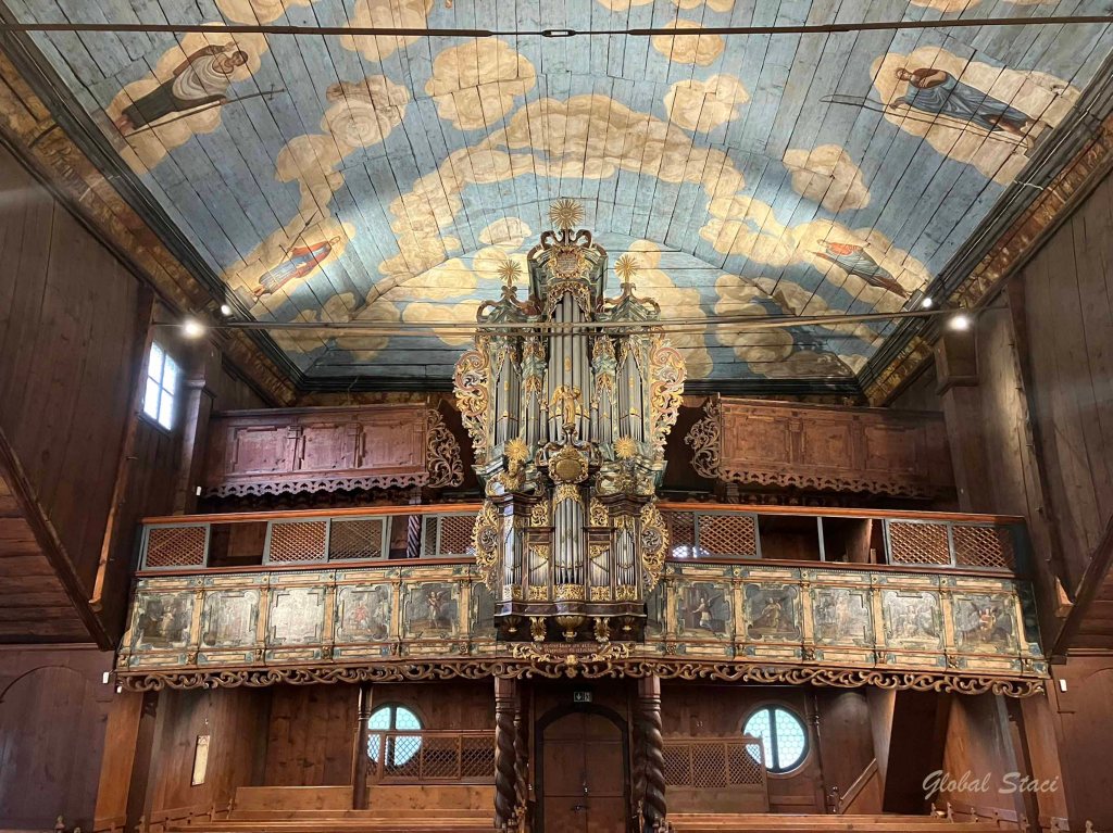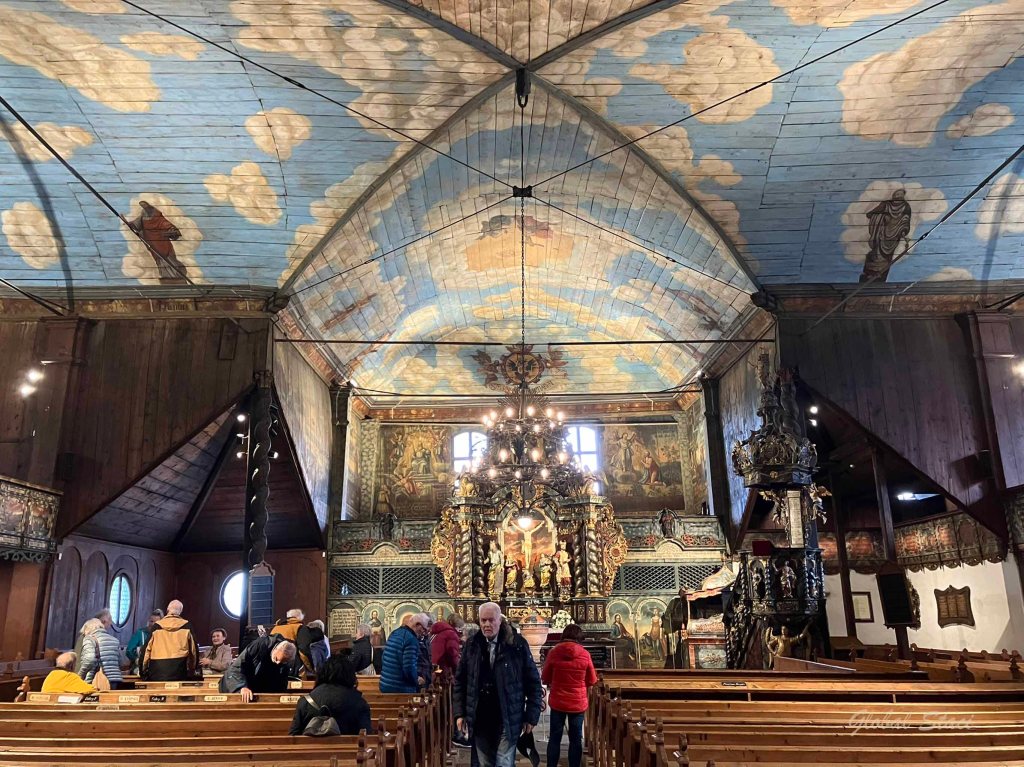 We visited two today. The Roman Catholic Church of St. Francis of Assisi in Hervatov, built by the end of the 15th century. It is the oldest and best preserved wooden church in Slovakia. The Gothic pictures and wall paintings from 1655 and 1805 are the most valuable parts of its interior.