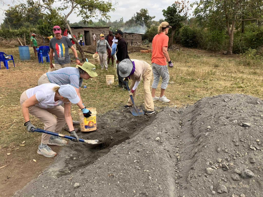 After many hours of travel, our team of 16 intrepid volunteers landed in Moshi, Tanzania! We were off to a superb start, in the shadow of Mt. Kilimanjaro, warming up for a fantastic week partnering with the Tanzania Women Research Foundation (TAWREF) to help a family in need of decent shelter.