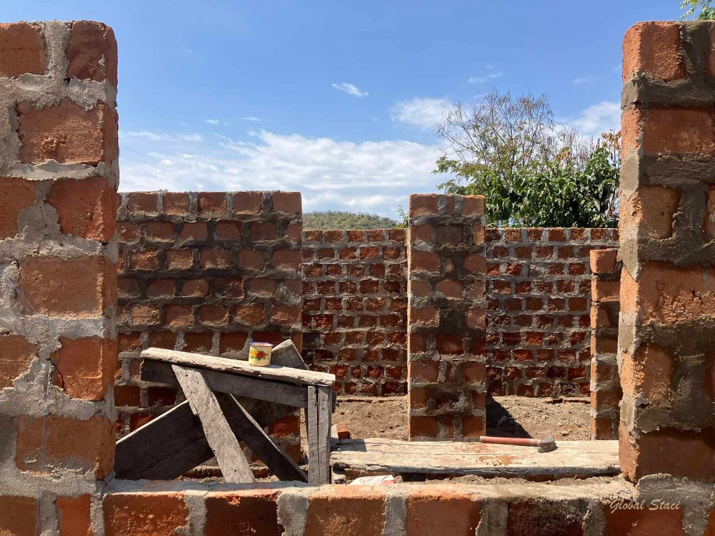 After only two days, we feel so connected to this very special community. We moved bricks (heavier than they look), mixed concrete, and our masons started to lay the first lines of bricks. It’s already starting to look like a house! Amazing progress.